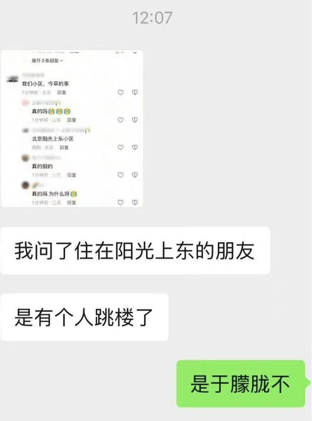 有网友还特意询问了居住在该小区的好友,得到的同样是肯定答复,不过坠楼者的身份并未予以证实,暂且无法确定是否是于朦胧。
