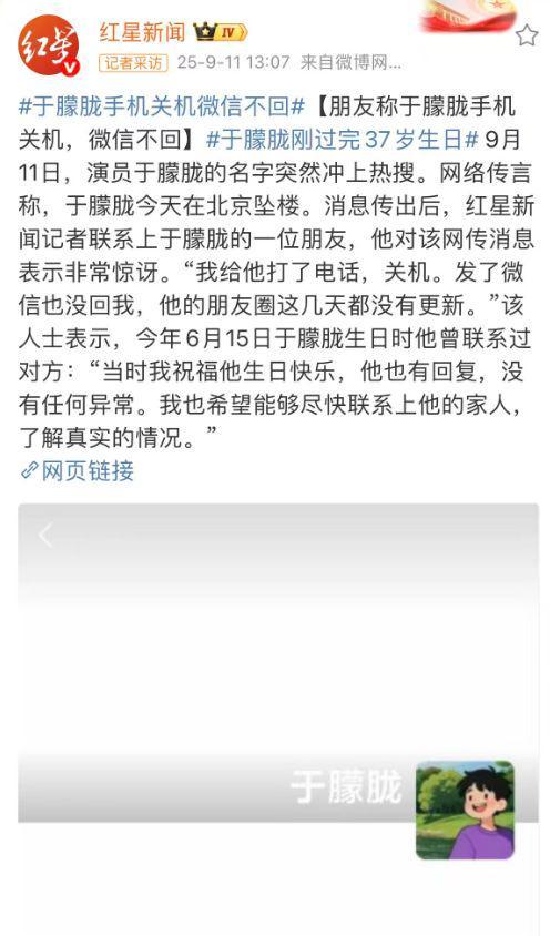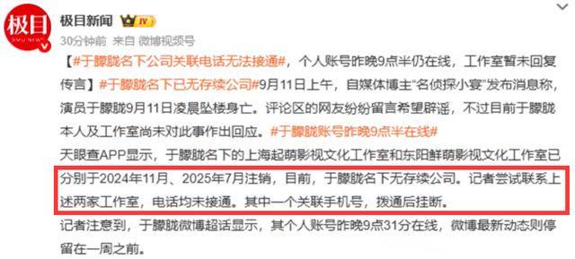 9月11日,一则大瓜再度搅乱原本平静的娱乐圈,有狗仔爆料演员于朦胧被爆坠楼身亡。