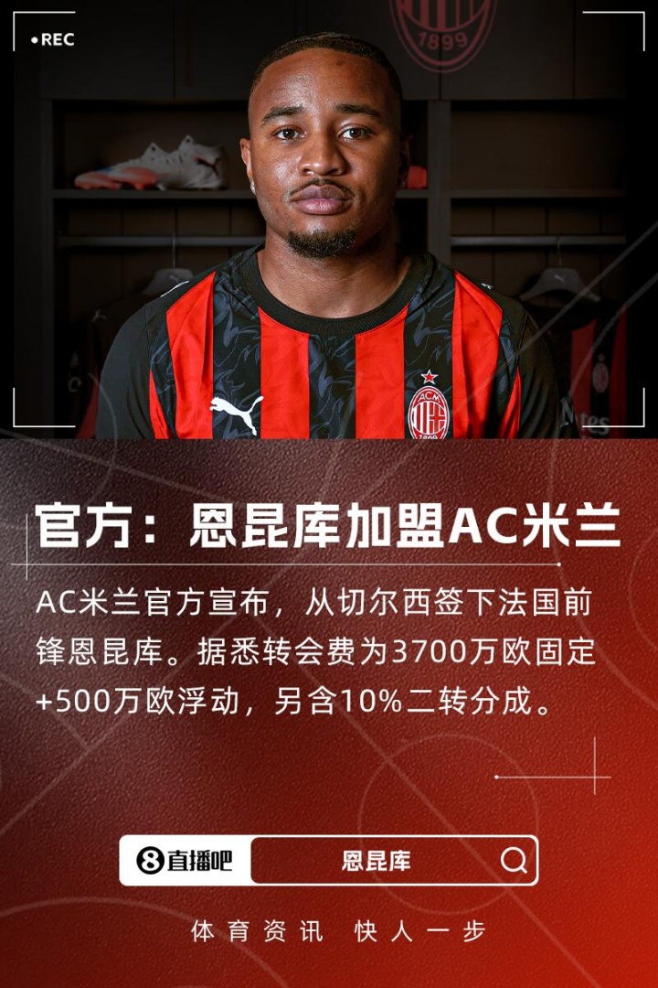 8月31日讯 AC米兰签下切尔西前锋恩昆库,双方签约至2030年,总价4200万欧,球员将身披18号球衣。恩昆库接受媒体采访,谈到加盟米兰的感受。