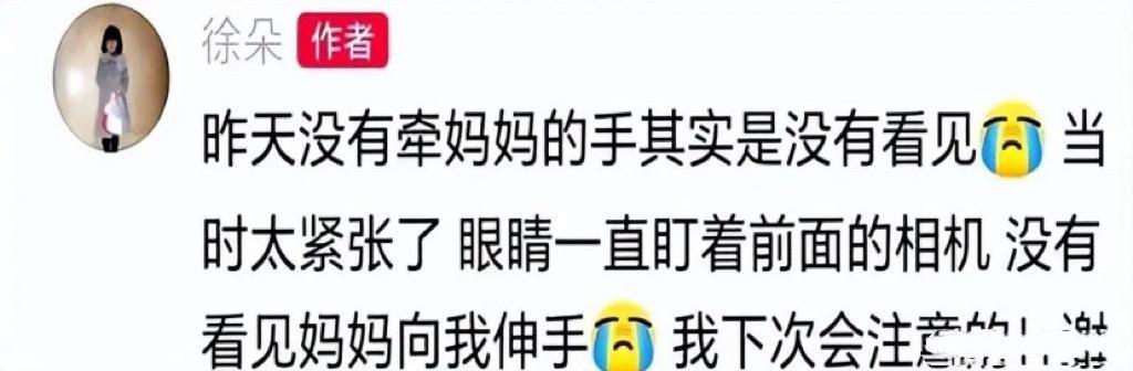 就在徐帆带徐朵出席活动伸手被无视后,徐朵在社交平台发文澄清了。表示没有牵妈妈的手,其实是没有看见,当时太紧张了,眼睛一直盯着前面的相机。